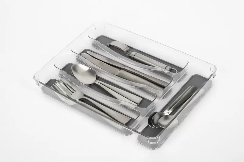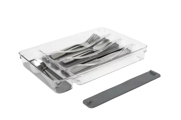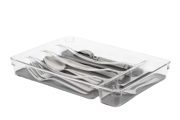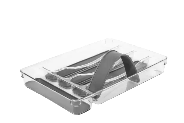 Bandeja transparente y anti deslizante para cubiertos en caravanas, autocaravanas y camper.