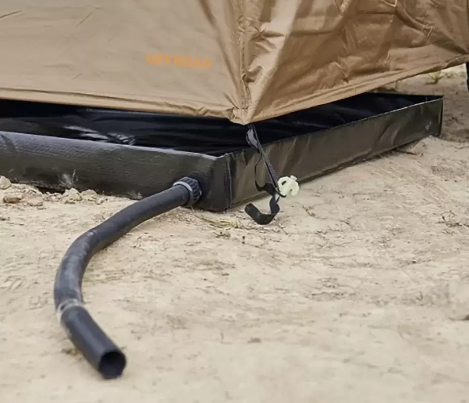 Cabina Ducha pórtatil plegable con luz Led y suelo rígido de PVC para camper y 4x4 overland.