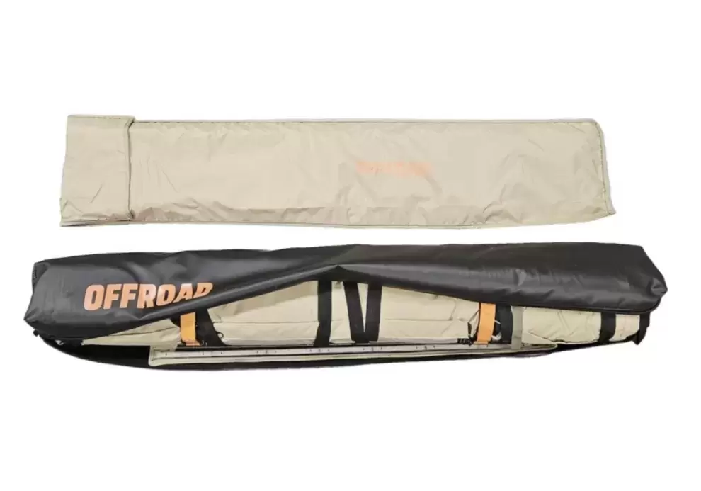 Color negro de bolsa de transporte con nombre de la marca  OFFROAD y tejido en color beige.