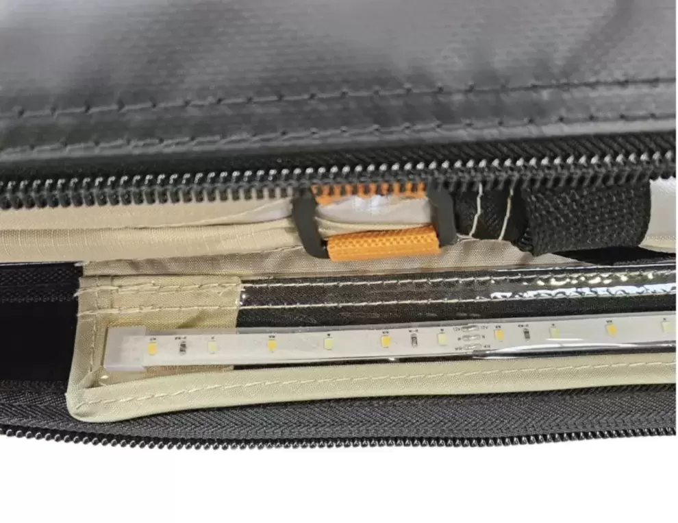 Bolsa de transporte de almacenaje en PVC con marco de aluminio para su instalación al vehículo.