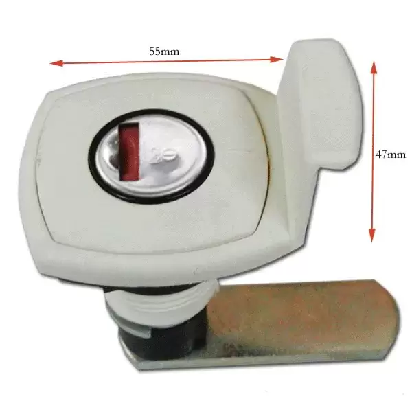 Cerradura para arcón blanca con tirador.