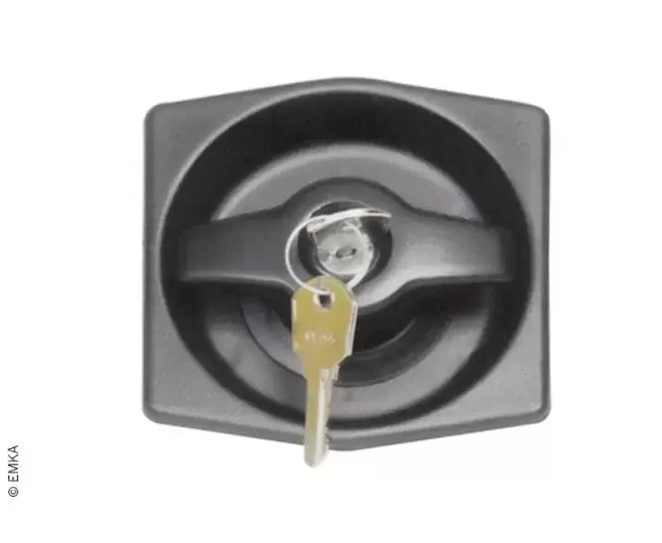 Manija exterior de poliamida negra con 2 llaves, bloqueable en cerradura GX.