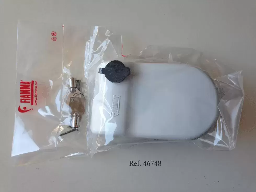 Cerradura de seguridad FIAMMA con cogida al interior del marco de la puerta, garaje o arcon, color blanco.