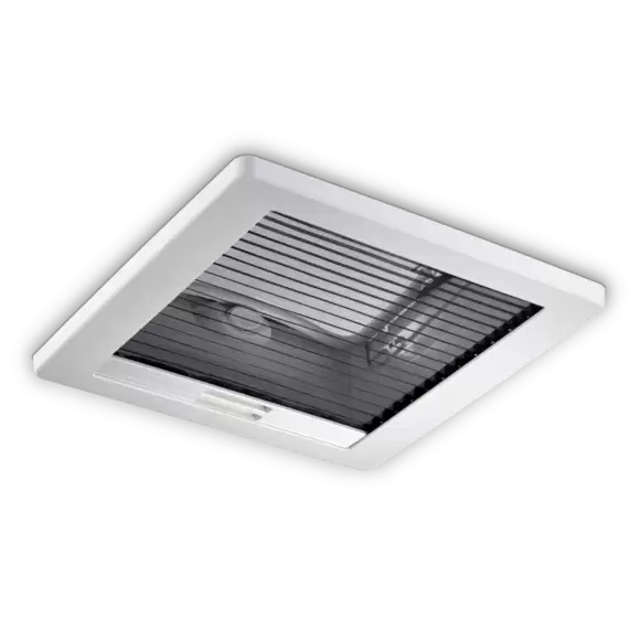 -Claraboya Dometic Mini Heki Style con cubierta transparente, cierre con multiples posiciones de apertura, plafon interior con oscurecedor y mosquitera.
