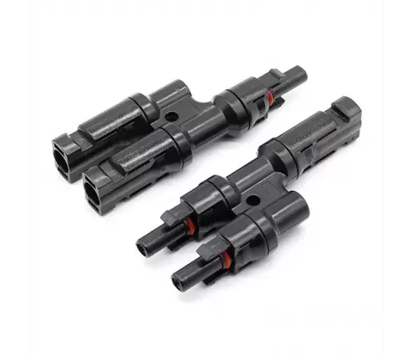 Conector para pasar de 2 placas solares a una salida positivo + y una salida negativo -