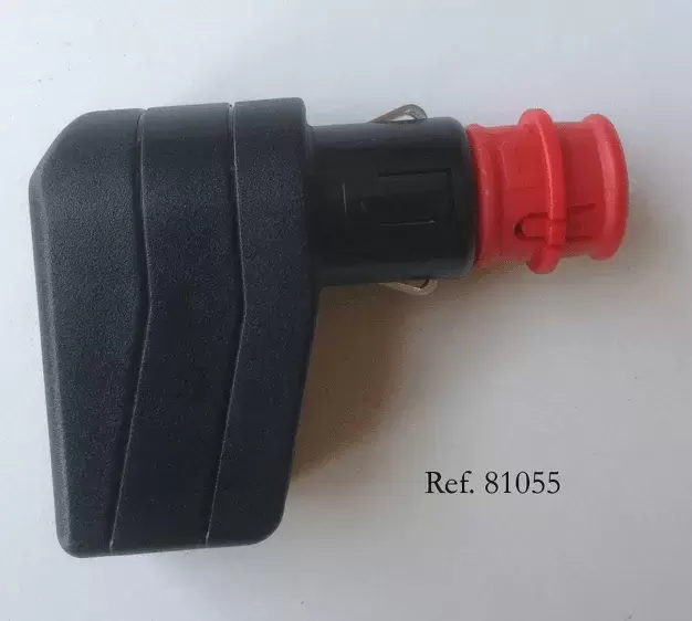 Conector para toma de mechero con forma acodada y led indicador de conexión.