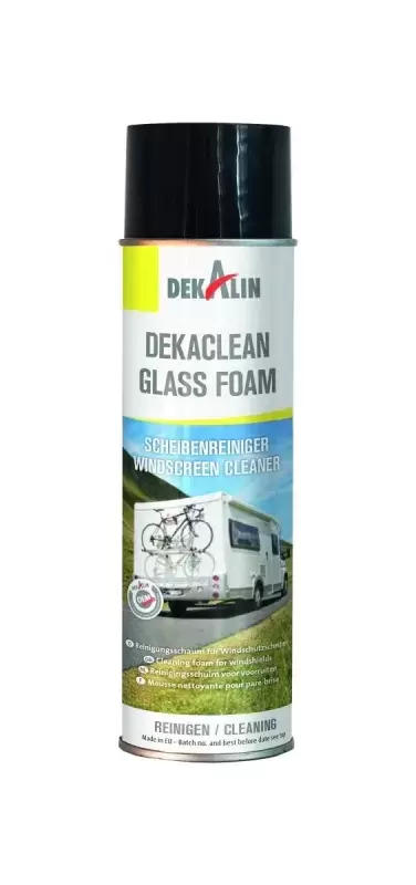 DEKACLEAN Glass Foam es un espray limpiador de espuma activa con excelentes resultados de humectación y limpieza en parabrisas y espejos. La espuma de vidrio Dekaclean no es adecuada para ventanas acrílicas y de policarbonato. El secreto del éxito se esconde en las burbujas de espuma. Durante la limpieza, estos revientan, de modo que los agentes de limpieza activos altamente concentrados llegan directamente a la suciedad. Esto disuelve la contaminación y se elimina fácilmente con la espuma.
