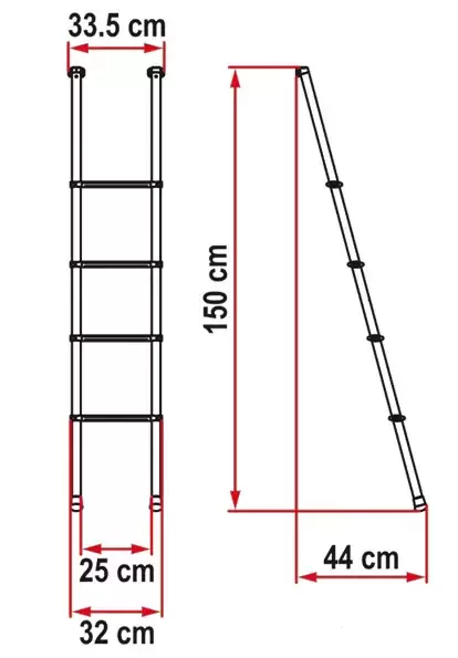 Escalera de aluminio alta calidad de cuattro peldaños con anclajes de fijación incluidos