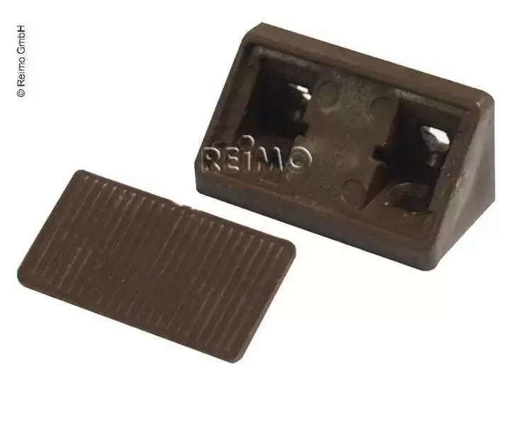 Escuadra MARRON OSCURO de plastico con tapa para armado de muebles en caravanas, autocaravanas y camper.
