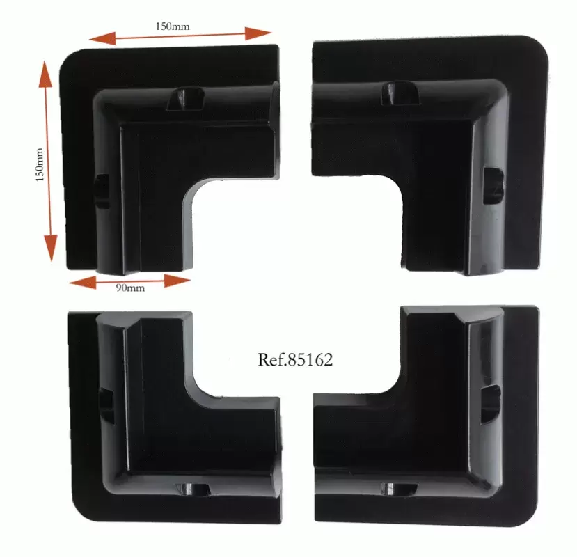 Juego de cuatro soportes de esquina en resina muy resistentes de color negro.