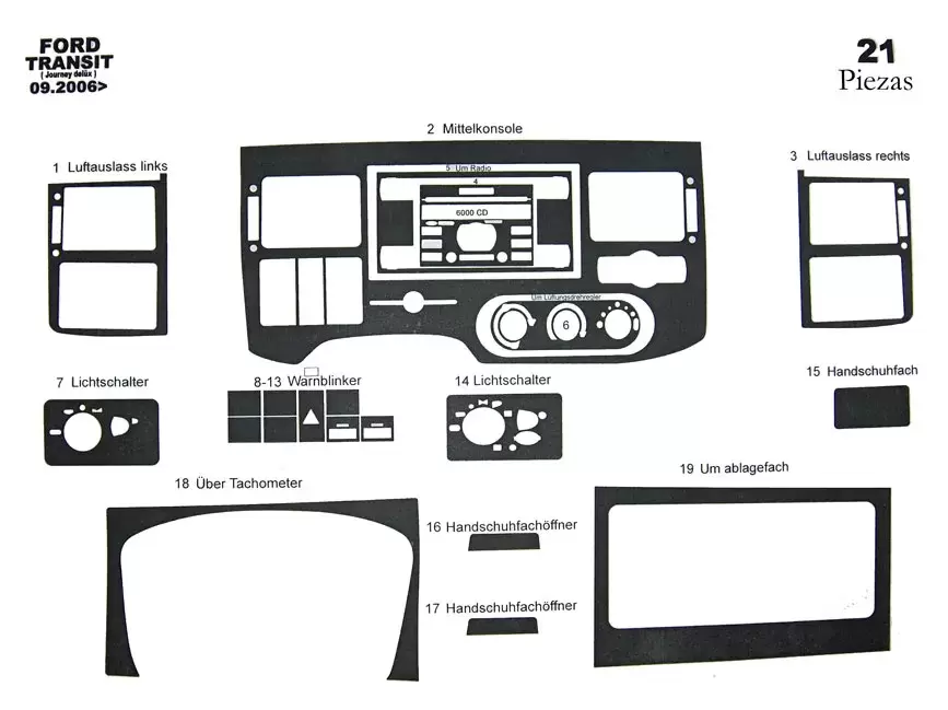 kit dec. salpicadero Ford Transit autocaravana 09-2006> madera 21 pzs