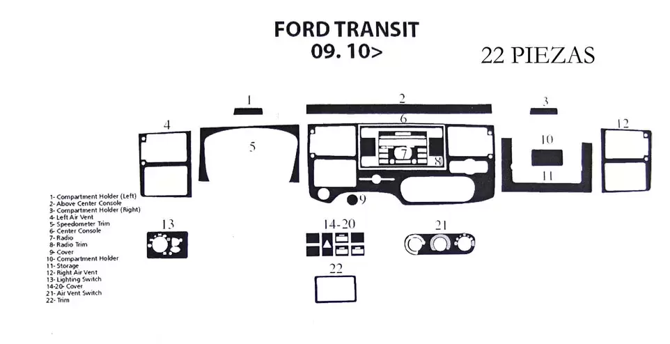 Kit dec. salpicadero Ford Transit autocaravana 09-2010> plata 22 piezas