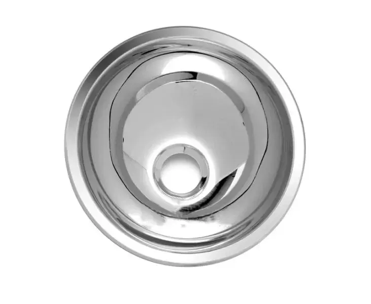 Lavabo redondo en acero inoxidable pulido con un diámetro, al borde de 265mm y 113mm de altura.