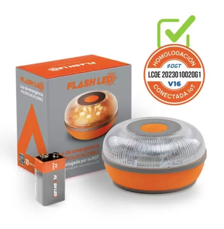 Luz de emergencia Geolocalizable Flash Led V16 con conectividad incluida hasta 2038 + funda protectora de REGALO.