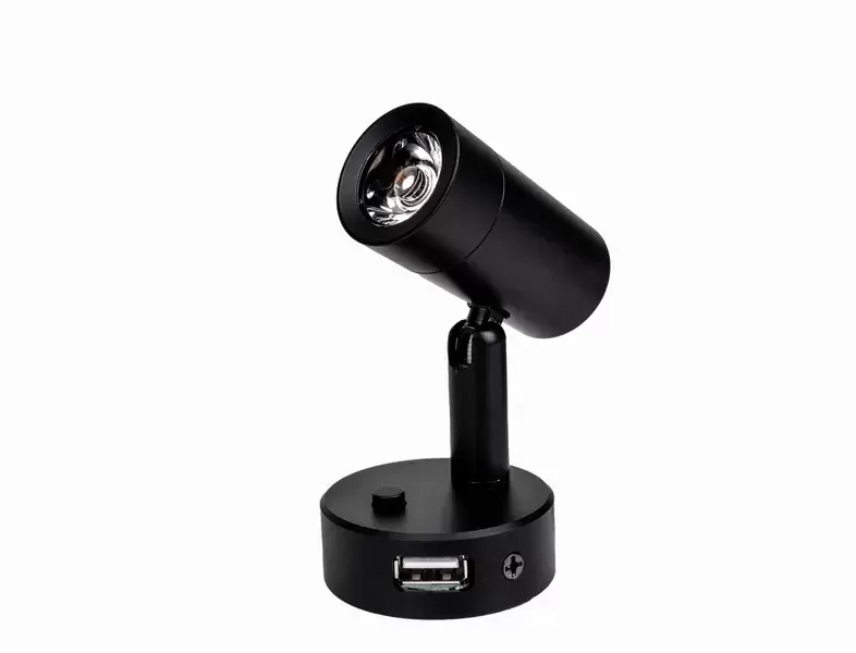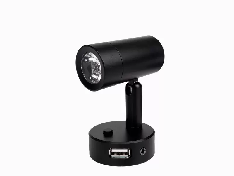 Mini lampara Led 12V interior Negro satinado con toma de USB mas interruptor, caravanas, autocaravanas y camper.