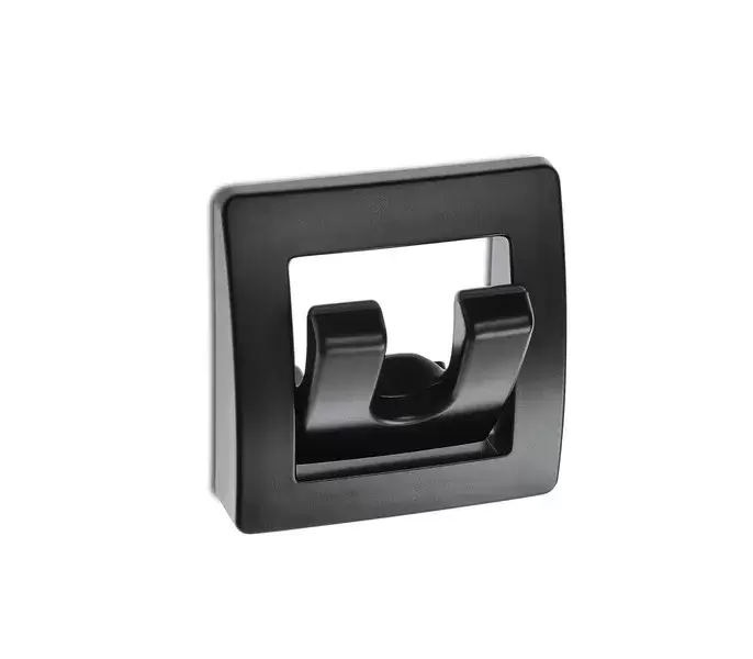 Este gancho plegable de plástico negro convence por su diseño elegante y fácil instalación.