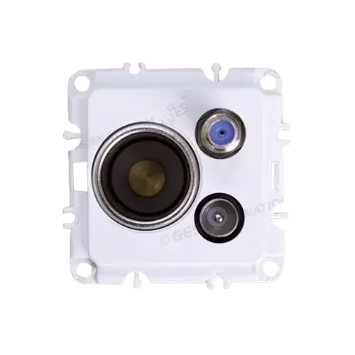 Multitoma para televisión con toma 12v y conexiones para antena y para satélite.
