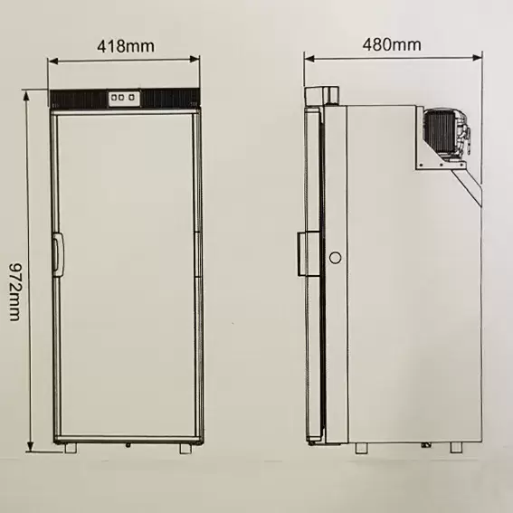 Dimensiones profundidad incluida la puerta (alto x ancho x profundo): 972 x 418 x 480 mm.