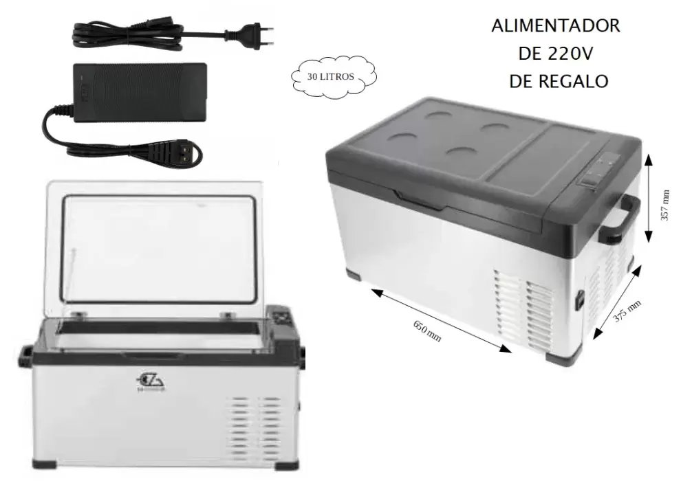 Nevera congelador EZA 30 Litros carcasa metálica compresor 12V +conector a 220V de REGALO, Caravanas, autocaravanas, camper y 4x4 overland.