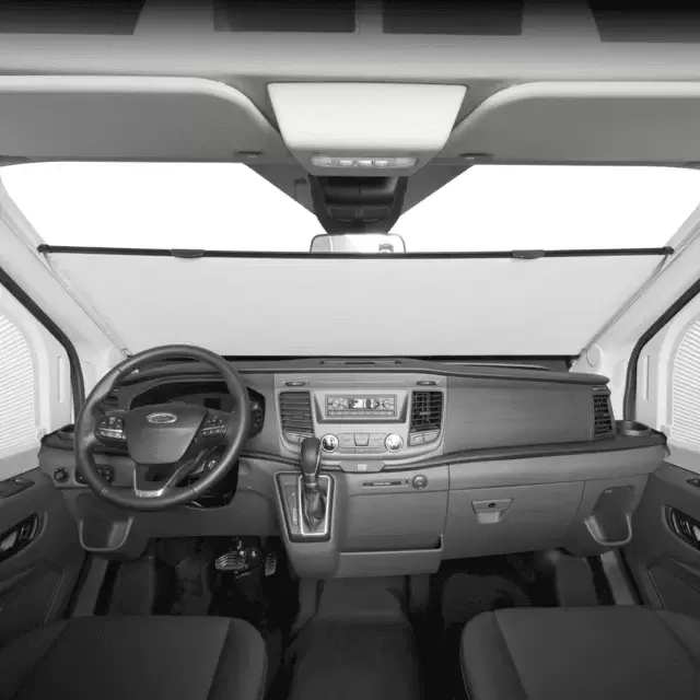 Este robusto estor enrollable de parabrisas está hecho a medida para los modelos Ford Transit V363 Facelift presentados en julio de 2019. Al ser ajustable de abajo a arriba en tres posiciones predeterminadas, ofrece una combinación perfecta de privacidad, sombra y aislamiento térmico. El tejido con revestimiento de aluminio mantiene fuera el calor o el frío. La instalación se realiza en pocos minutos, con resultados perfectos. Este reequipamiento luce como el original instalado de fábrica.