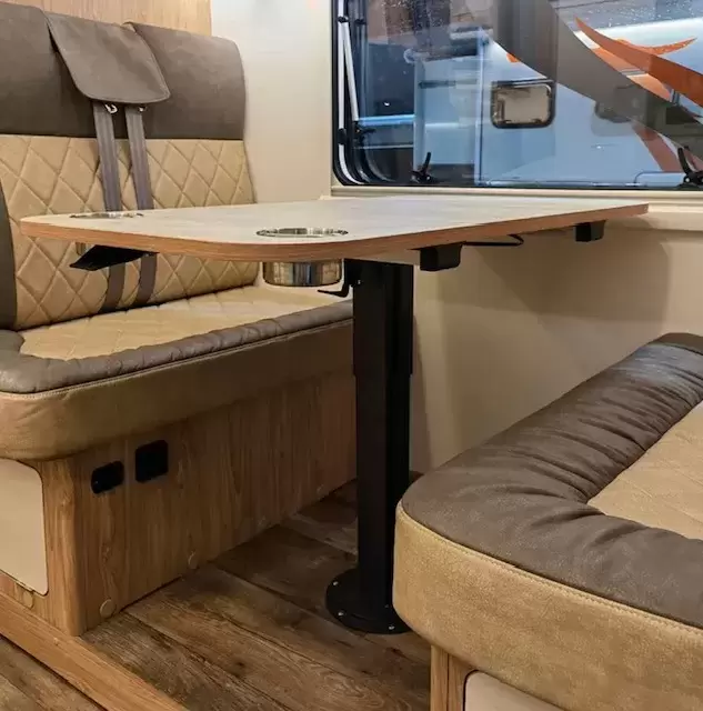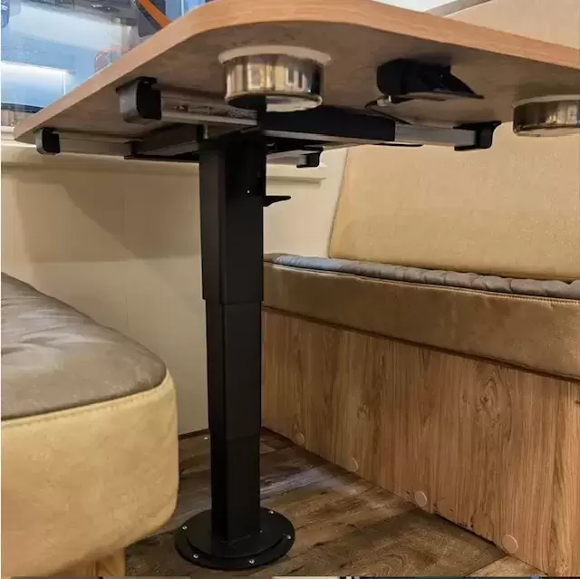 Pie de mesa telescópico negro deslizante en 4 direcciones y 360º giratorio con pie cuadrado para caravanas, autocaravanas y camper.