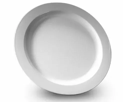 Plato llano blanco 27cm diámetro de policarbonato muy resistente. Apto para electrodomésticos.