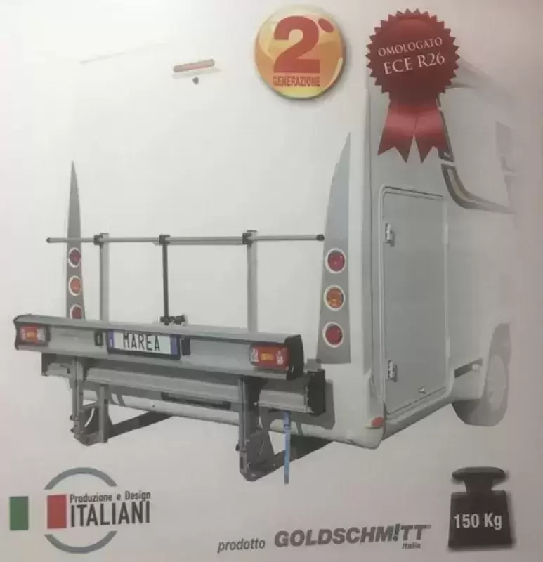 Este porta motos GOLDSCHMITT se suministra con la extensión de chasis para los vehículos indicados. El fabricante considera que es mucho mejor que el peso esté soportado sobre el vehículo y no sobre la misma vivienda.
