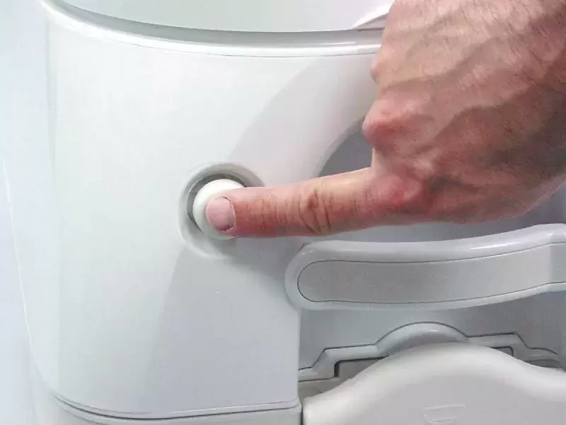 El inodoro portátil para acampar 976 Dometic es perfecto en detalle. Operaciones de bombeo menos por simple operación de botón pulsador, una mayor eficiencia a través de una fuerte lavado de presión, hasta 27 lavados con un relleno, sin salpicaduras vaciado, protección contra sobrellenado en volumen menor de agua fresca / 8,7l y mayor volumen de 18,9l de aguas residuales y el indicador de nivel del tanque. Opcionalmente, un montaje en el piso está disponible. El inodoro está hecho de ABS y acabado brillante agradable. Gris