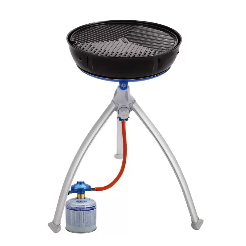 Regulador de presión 30 mBar con lira de gas para cartuchos recargables de 445 y 500 gr, rosca universal EN417.