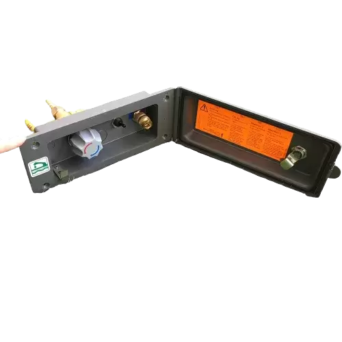 Toma de ducha Exterior REICH GRIS agua caliente y fria con cerradura 215x95 mm para caravanas, autocaravanas y camper. - Ref. 632201